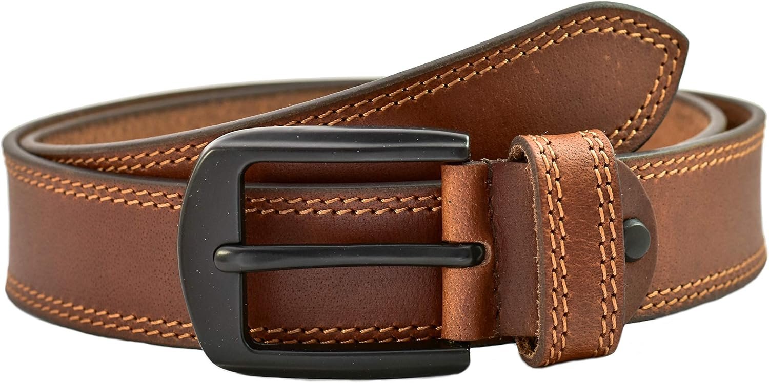Elevate your wardrobe with this sophisticated belt, crafted from high-quality full-grain leather. The double stitch design adds a touch of refinement, while the mat black buckle provides a sleek, modern finish.