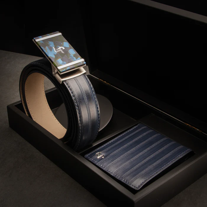 Elevate your everyday style with this stunning Italian VT Stripe genuine leather wallet and belt combo. Crafted from premium-quality leather, this set exudes sophistication and elegance.