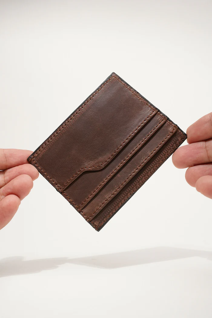 The JULKÉ card holder that’s simple, yet far from basic. Handcrafted in richly coloured leathers with unique traits – a two-toned brown and a matte black – Vince is is an example of the classic clean accessory aesthetic. The hidden cash pocket adds a little something extra to your average card holder,
