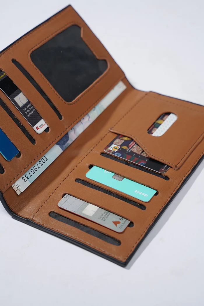 A mix of two different leather textures, JULKÉ’s Garret is the best of both. A unqiue, asymmetric double weave runs from top to bottom on one side for artistic flair. On the inside, specially designed rounded card slots on plentiful number keep all your cards secured, along with an extensive horizontal pocket for cash storage.